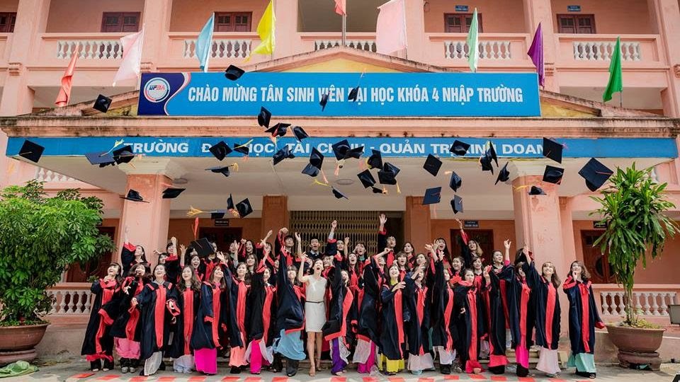 Sinh viên tài chính và quản trị kinh doanh trong ngày tốt nghiệp